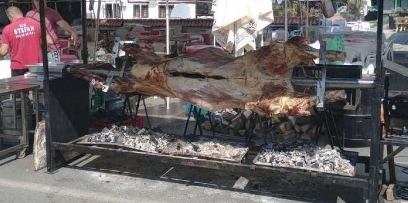 Na Širokoj čaršiji u Leskovcu od jutros se moglo videti neobično obeležje – vo na ražnju! Iako je trenutno u toku Roštiljijada, ovaj put vo je bio glavna atrakcija umesto tradicionalnih mesnih specijaliteta. Leskovački vo težak nekoliko stotina kilograma privukao je mnoge posetioce koji su pravili selfije pored ove neobične grdosije. Kasnije su posetioci imali priliku da kupe sveže porcije voća po ceni od 3.500 dinara po kilogramu.