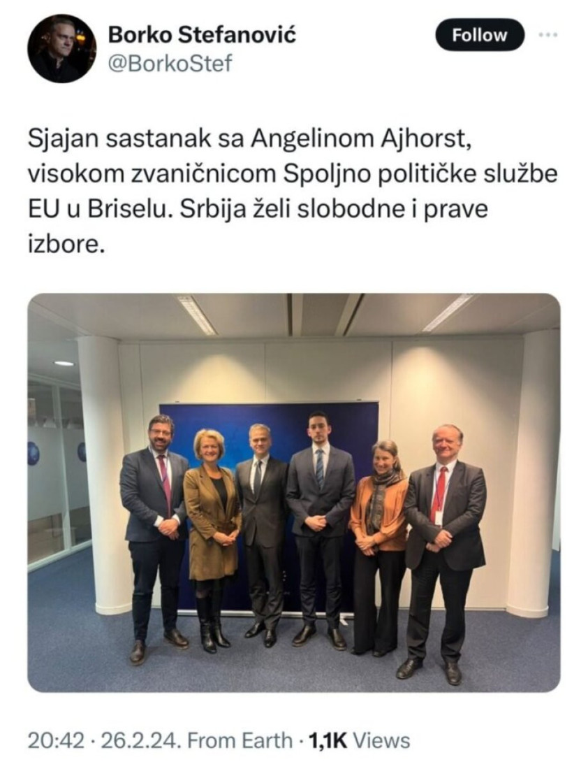 Opozicija okupljena oko liste „Nasiljem protiv Srbije“, predvođena tajkunom Draganom Đilasom, nedavno je posetila Brisel kako bi zatražila uvođenje sankcija Srbiji i srpskom narodu. Na sastanku sa izvršnom direktorkom Evropske službe za spoljne poslove Angelinom Ajhorst, lideri opozicije istakli su da žele slobodne i prave izbore u Srbiji.
