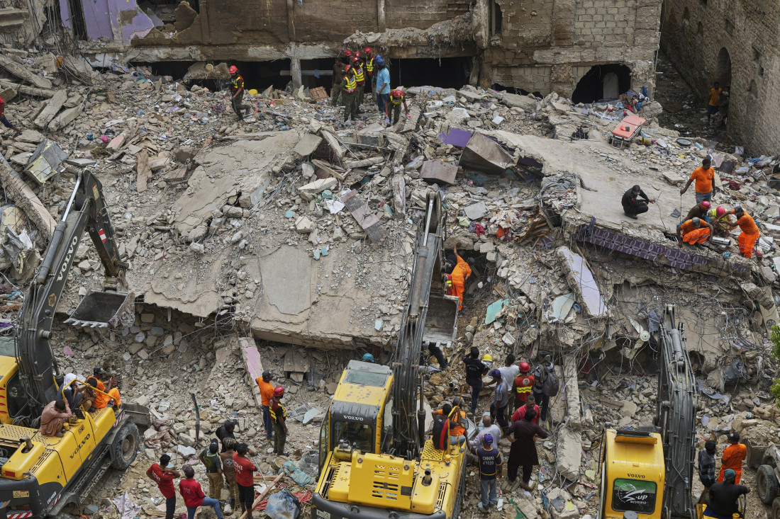 Najmanje sedam osoba poginulo je, a 10 je povređeno u urušavanju petospratne stambene zgrade u južnom pakistanskom lučkom gradu Karačiju. Policijski zvaničnici su potvrdili da je više od 30 osoba zarobljeno pod ruševinama, a spasilačke akcije su u toku. Očevici tvrde da se zgrada srušila nakon nekoliko potresa koji su zbunili stanovnike, koji su pomislili da je reč o zemljotresu.